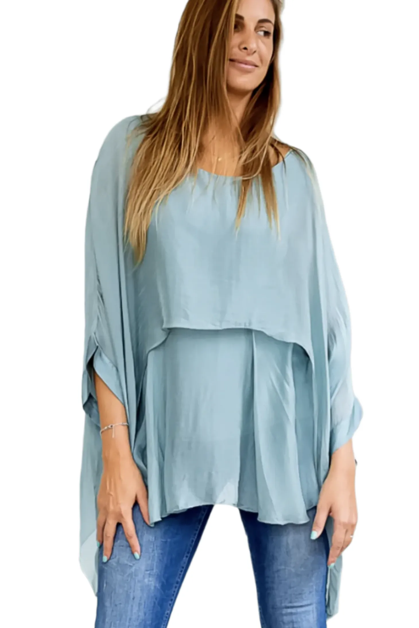 The Chantelle Top is a stylish statement piece, crafted with Italian silk blend for a luxe feel and comfortable fit. The loose silhouette and delicate layered design create an elegant air, perfect for special occasions like weddings and parties. Experience luxurious style with the Chantelle Top.
