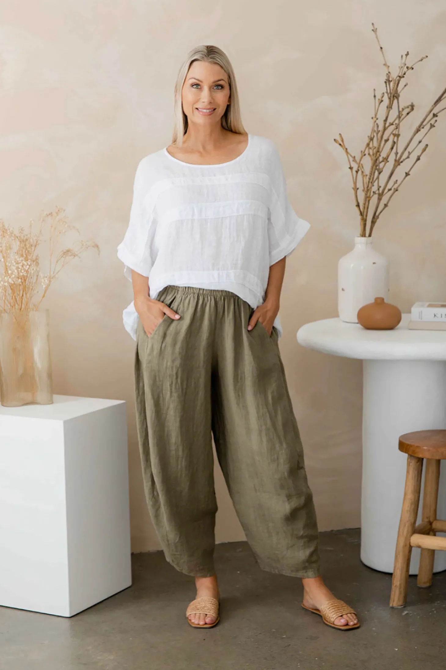 Introducing the Fern Pants in Slate , the perfect pants for both comfort and style. Made with soft linen and designed by Italian Cartel, these pants are perfect for lounging around or going out.