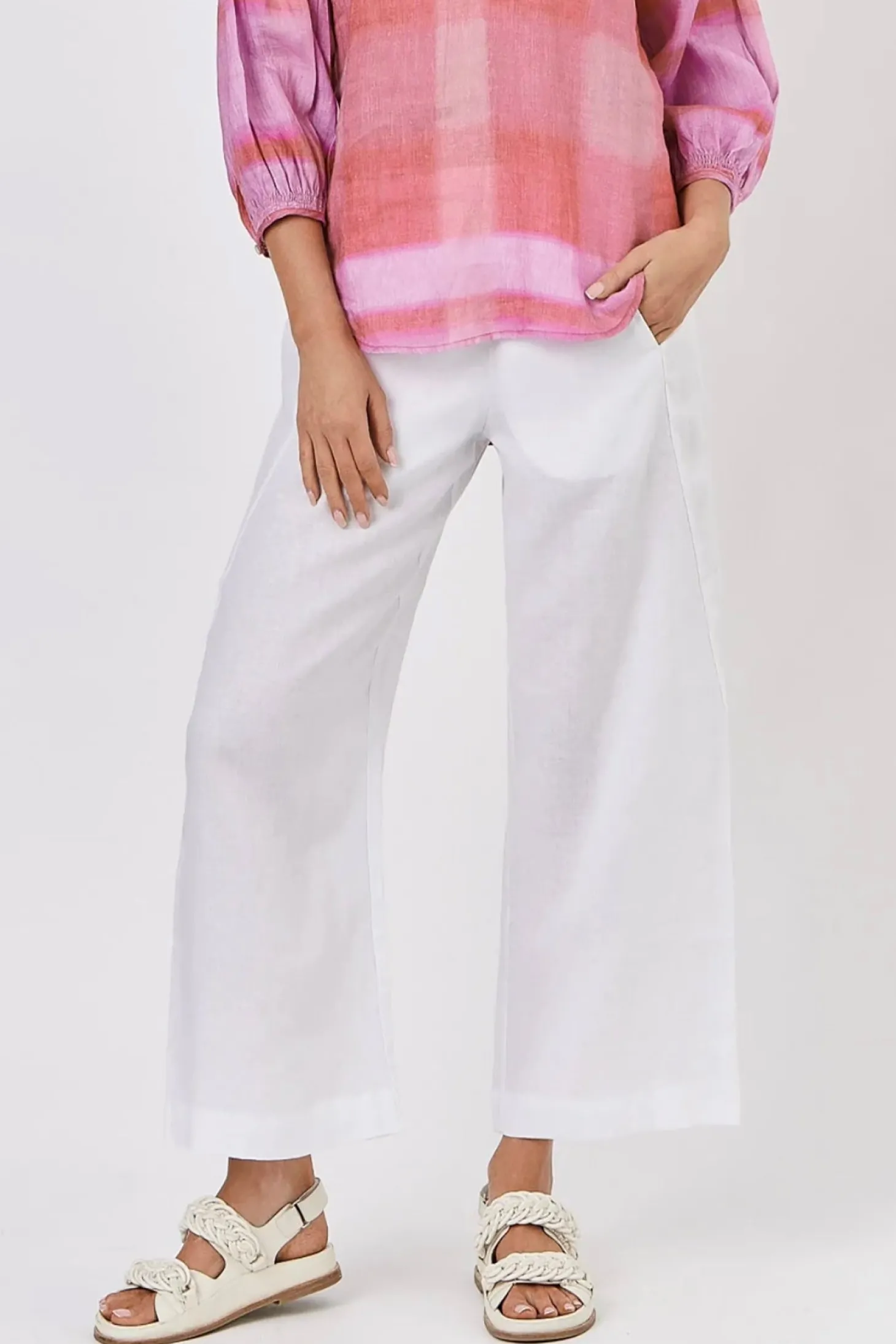 Elegant and stylish, the Hayley Linen Pant makes a statement look. Crafted from premium 100% linen, it features a straight leg style with side pockets and an elastic back waist for superior comfort. Make a statement with this timeless must-have.