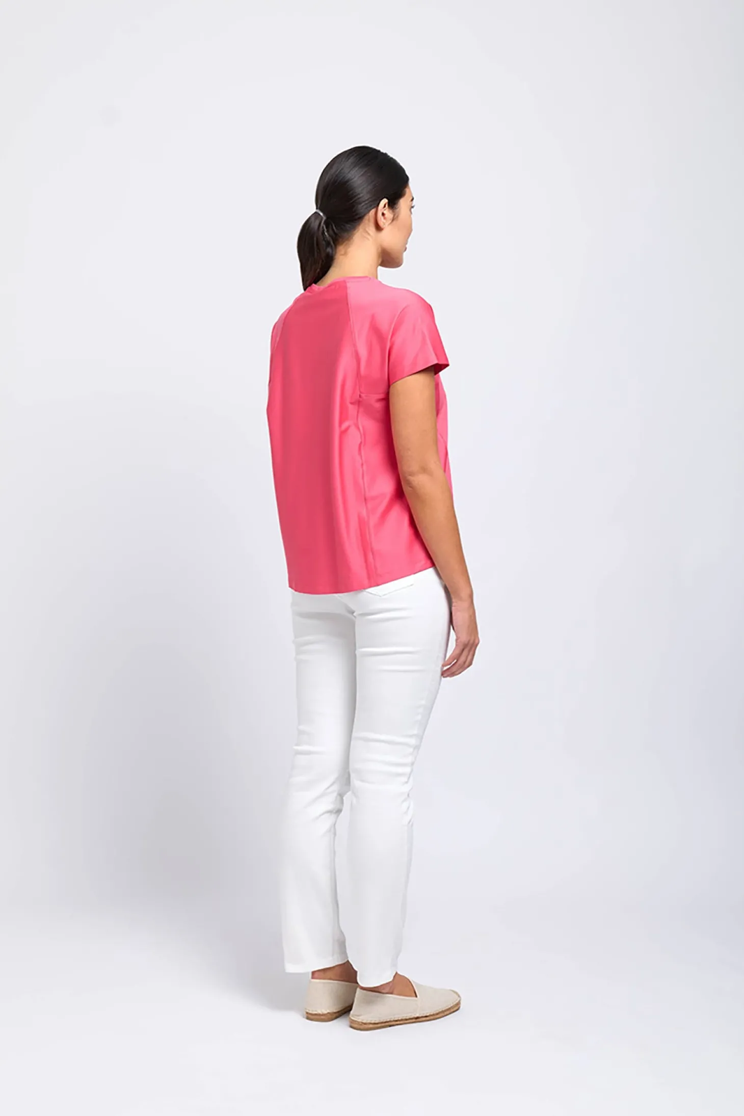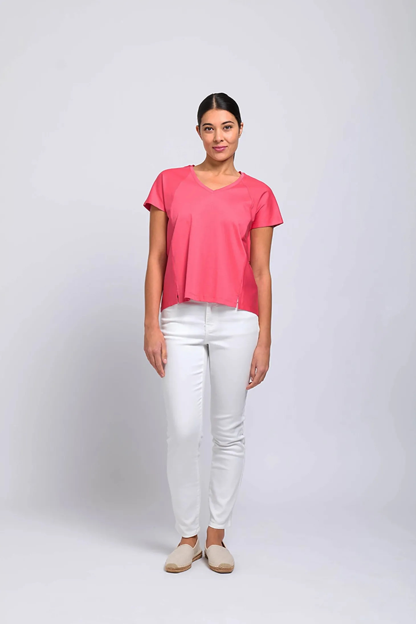 Introducing our Foil Line Em Up Top! Made with 100% luxurious mercerised cotton, this top provides a silky feel and subtle sheen. Perfect for any occasion with its versatile V neckline and short sleeves. Dress it up or down for a chic and comfortable look.
