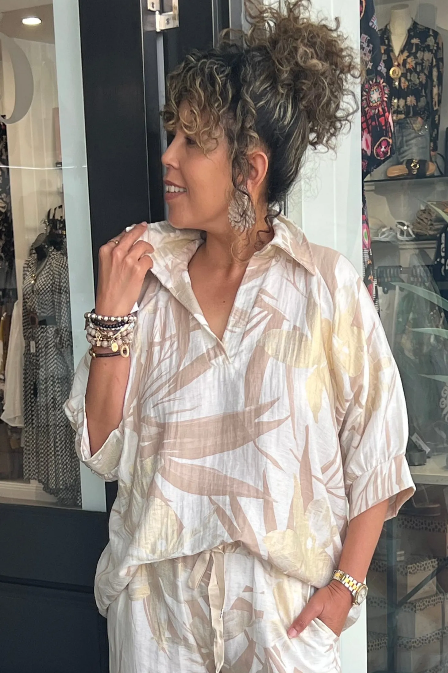 This print top by Cindy G is crafted from high-quality linen blend and made in Italy for superior quality. Its unique curved drop-back hem adds a stylish touch. Embrace both comfort and style with this must-have piece in your wardrobe.