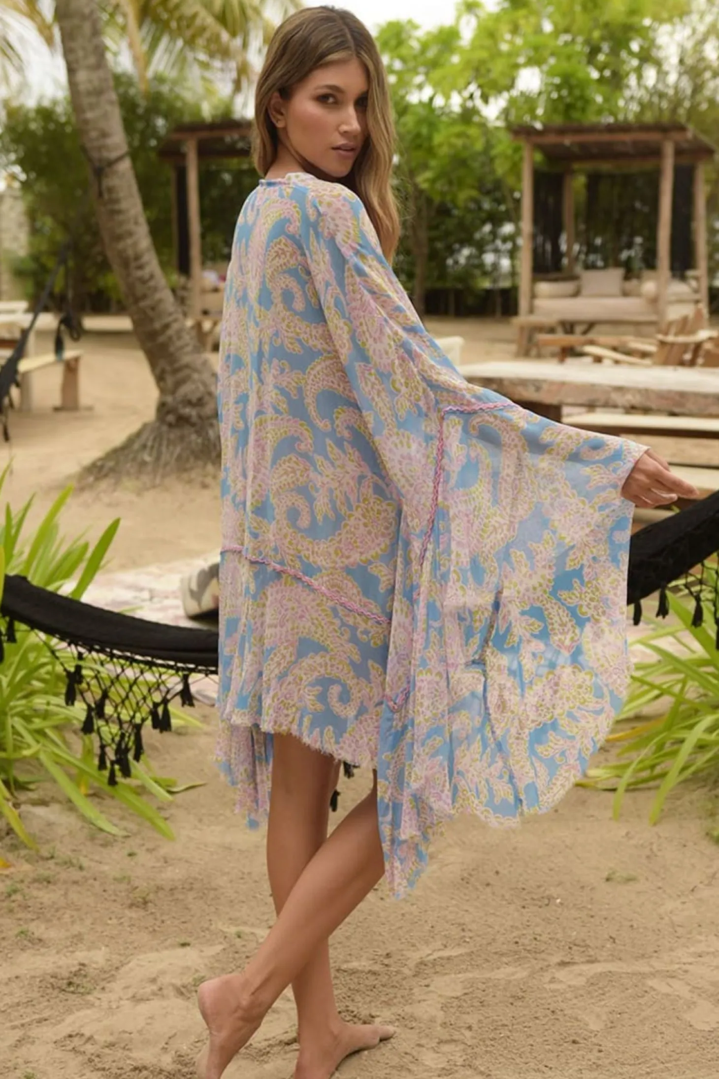 Elevate your summer wardrobe with our Madalena Short Kaftan. Crafted by Miss June, this georgette kaftan boasts sequinned and embroidered details, perfect for adding a touch of elegance to any occassion. With long sleeves and a vibrant blue color, this kaftan is a must-have for any luxury fashion lover.