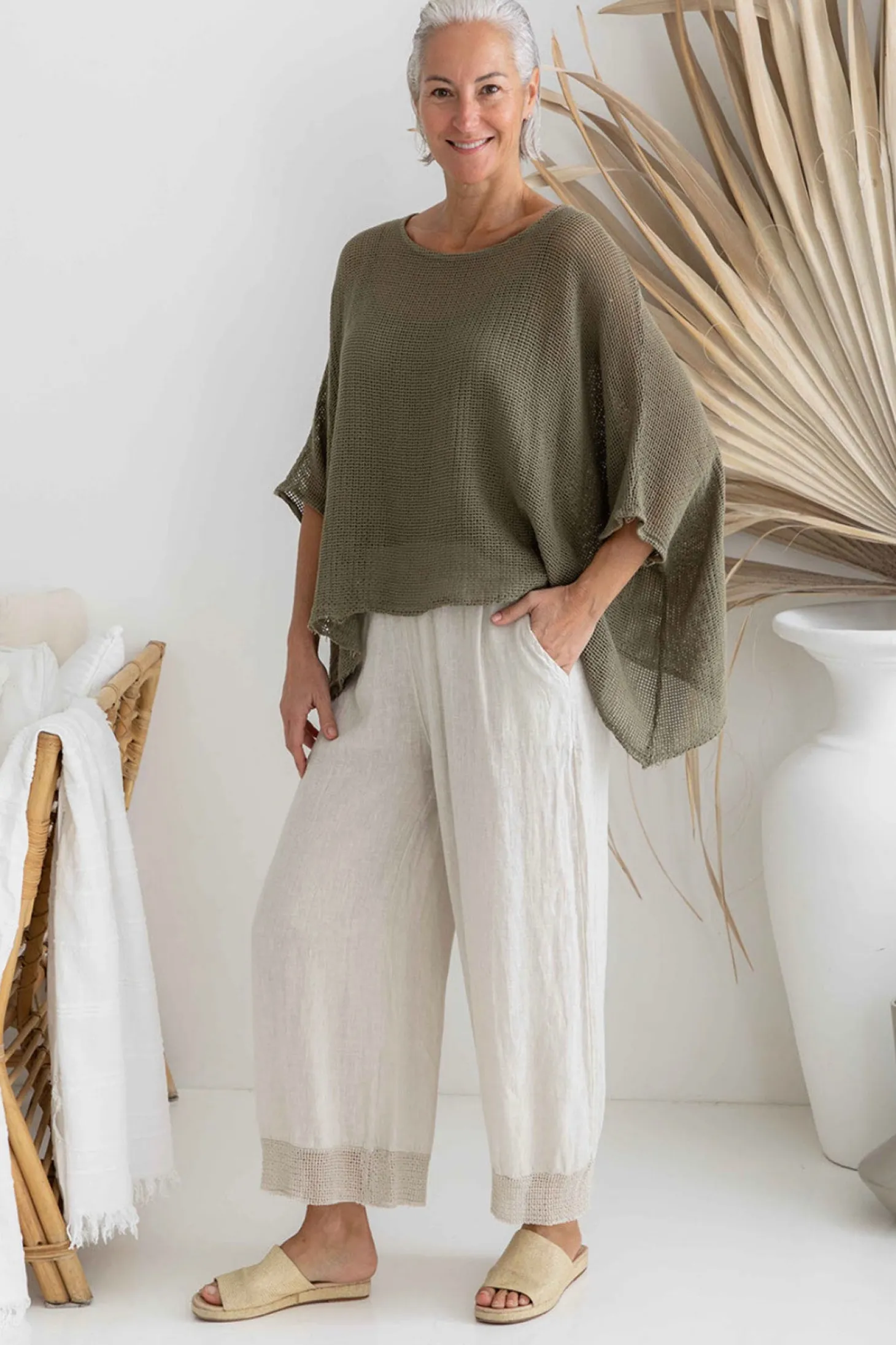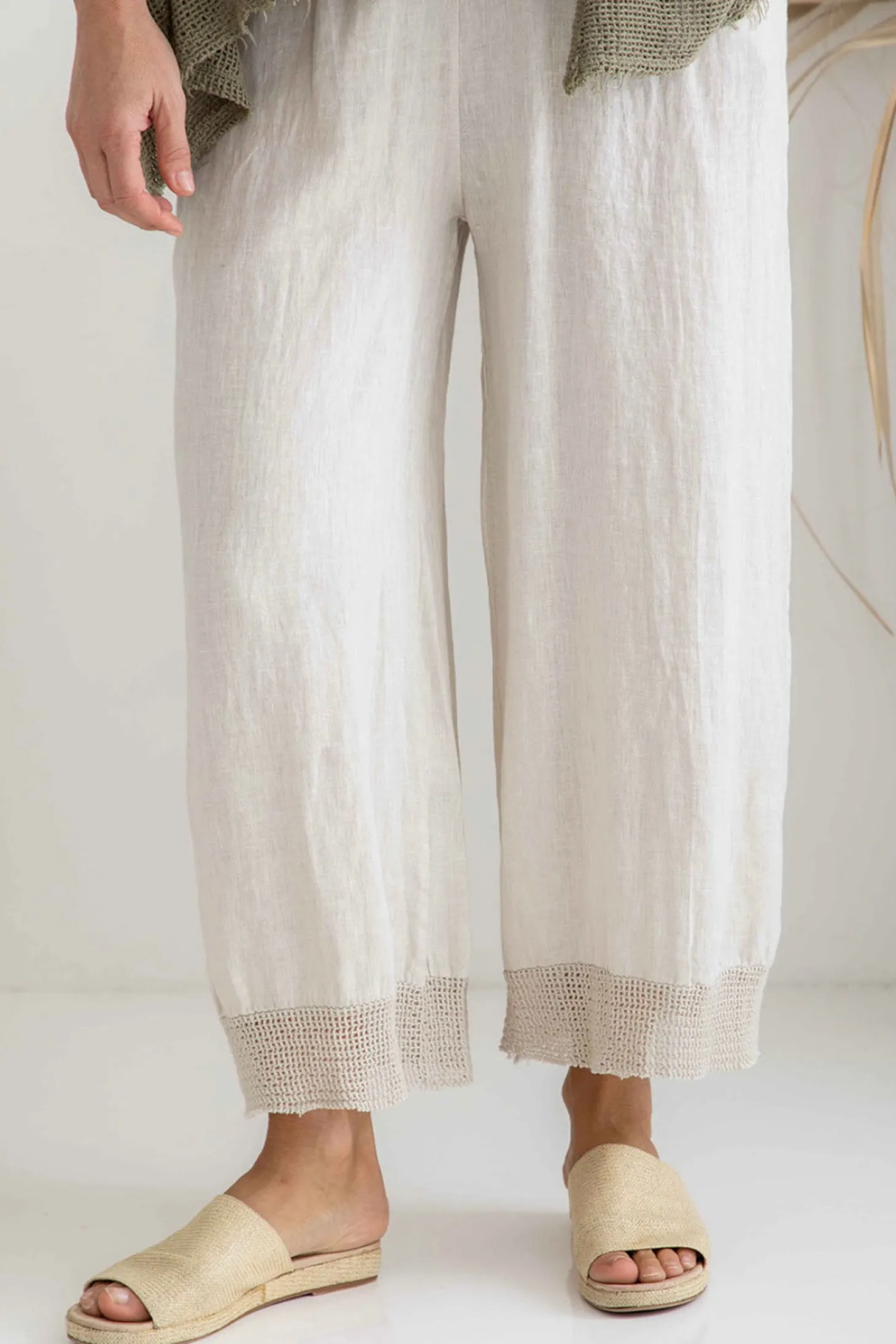 Add a touch of whimsy to your wardrobe with the Paneta Pant. Made from lightweight linen, this playful pant features a soft elastic waist for easy pull-on wear and convenient side pockets. The cotton netta detailing at the hem adds a unique and charming flair. Perfect for any occasion, the Paneta Pant is sure to be a new favorite!