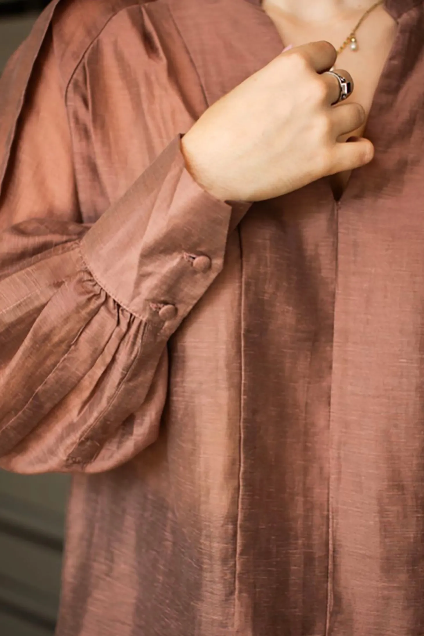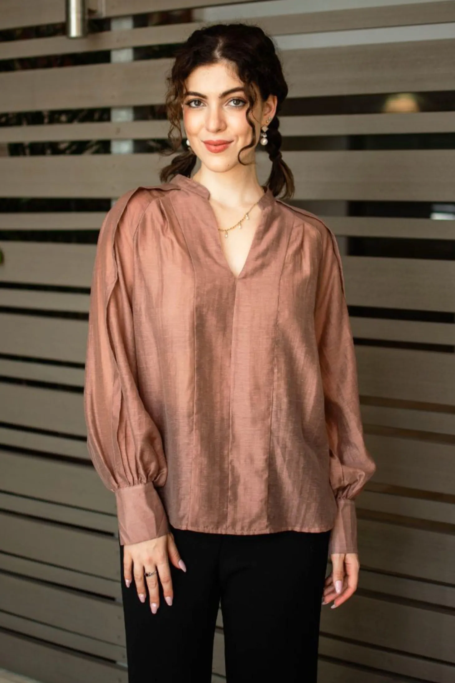 Made from luxurious fabric, the Riley Shirt in Latte exudes elegance and sophistication. With its soft texture, flattering v neck, and oversized cuffs, it is the perfect shirt for any occasion. Transform your wardrobe with this stunning shirt.