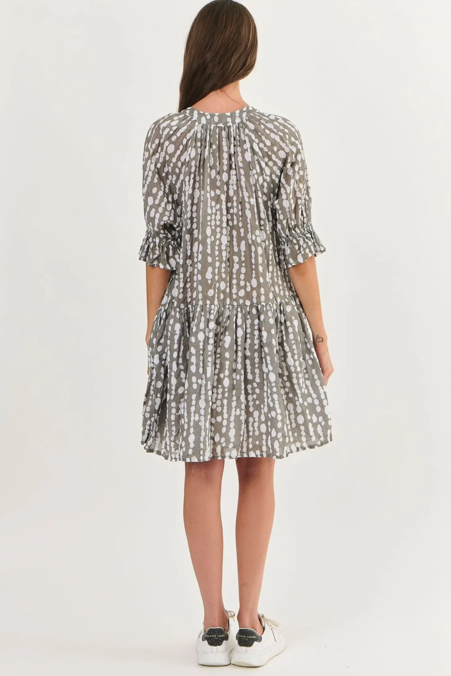 Introducing the Shelly Cotton Dress – the perfect blend of comfort and style! Made from 100% cotton, this knee length dress from Namastai features short sleeves for a breezy, summer look. This dress is sure to be a unique addition to your wardrobe.
