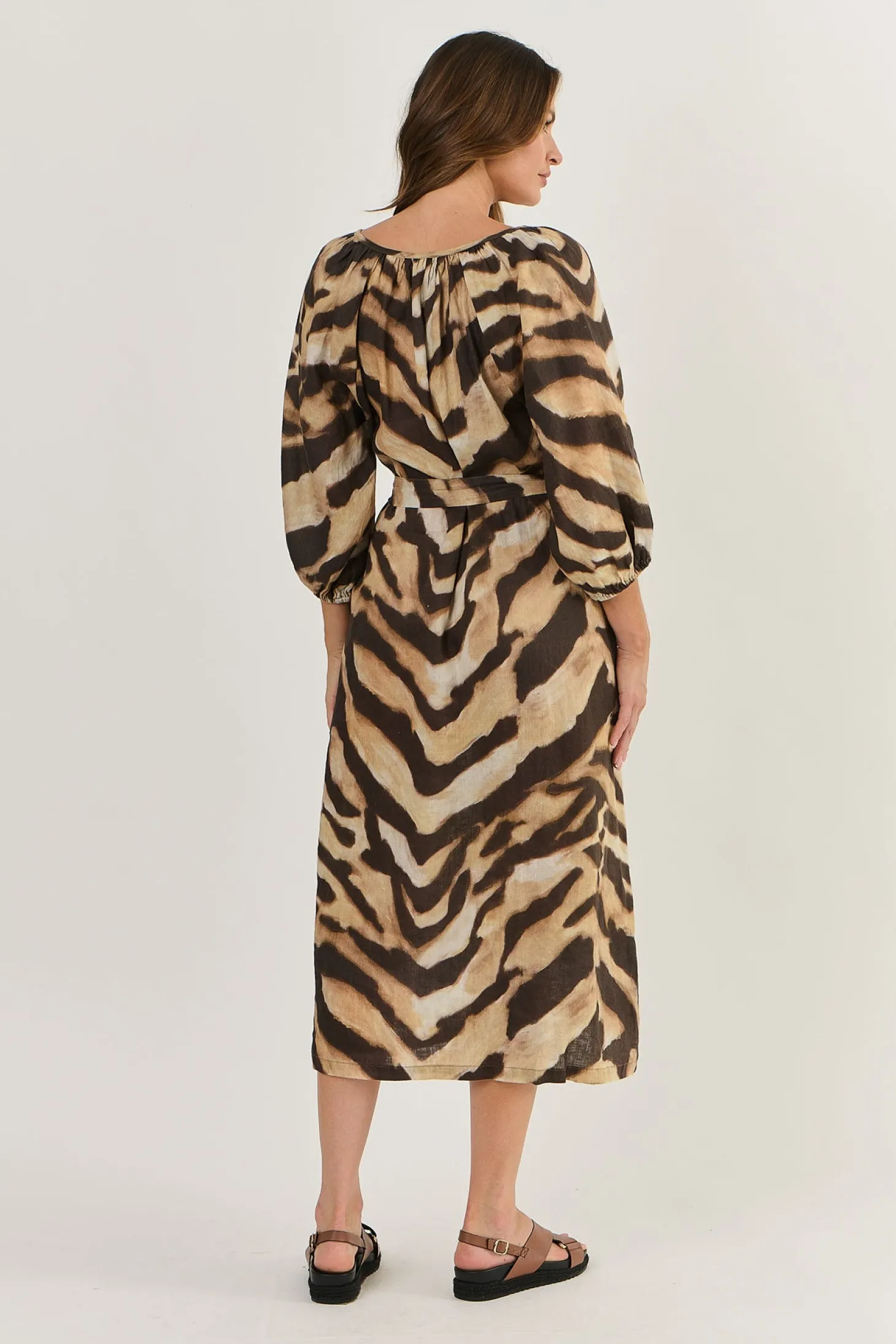 Unleash your inner wildcat with our Wildcat Linen Dress. Designed with casual elegance in mind, this dress features delicate gathering leading into a v-neck and beautiful bishop sleeves. The waist tie defines your shape while the two side pockets add a touch of practicality. Crafted from 100% linen for a luxurious feel.